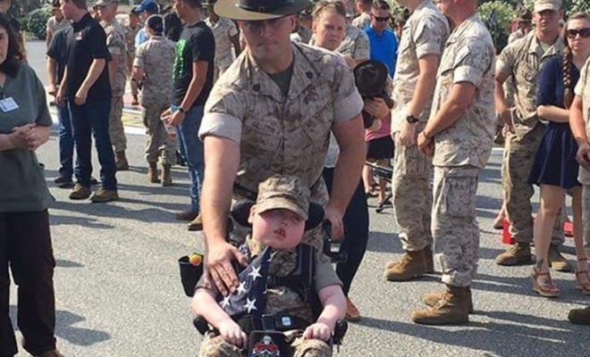 Wyatt’s parents wanted desperately to do something special for their boy. His father, Jeremiah Gillette, told of his son’s struggles on social media. Since Jeremiah works as a Marine drill instructor, his friends took notice of his post and provided prayers and a petition to recognize Wyatt as an Honorary Marine.