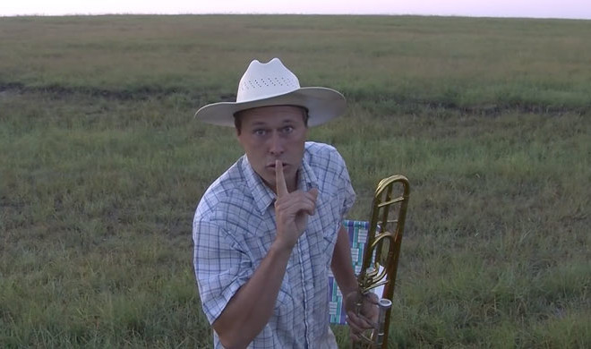 But his most popular video by far is perhaps his most simple. In it, Klingenberg sits down in a lawn chair overlooking a vast pasture. He begins to play Lorde’s smash hit “Royals” on the trombone. It’s not a particularly world-class performance, but he clearly knows his audience. Soon, a herd of dozens of cattle emerges on the horizon, drawn to the sounds of sounds of Klingenberg’s impassioned performance.