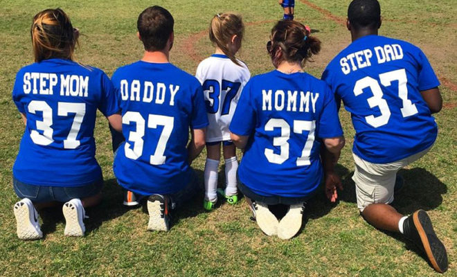 On April 15th, Emilee Plaayer posted a photo of herself kneeling on a soccer field for her stepdaughter Maelyn’s game. On the back of her shirt, the words “Step Mom” were written above the little girl’s number of 37. Next to Emilee was her husband, who wore the same jersey with “Daddy” written on it. But the support for the young girl at her big game didn’t end there. Her “Mommy” (Clara Cazeau) and “Step Dad” (Alex) were also present.