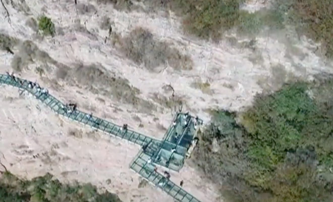 Walking across the lengthy (about 873 feet) glass-bottom bridge in the East Taihang Mountains requires a strong stomach and a lot of trust for the architecture since it hangs about 3,870 feet in the air along the edge of the beautiful mountains. But this particular glass bottom bridge has recently gone viral for more than its breathtaking view. Videos of visitors walking along the path and freaking out have spread around the internet quickly. And who wouldn’t freak out when the pathway cracks beneath your feet?