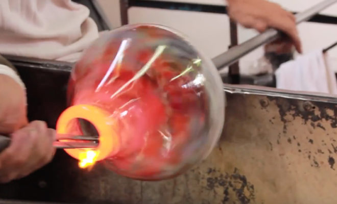 Once you watch this video that takes you through the process of forming a pitcher, you might not be able to help yourself from signing up for a glass blowing class…or at least clicking on another video. The danger and beauty of working with molten glass captivate anyone who finds other people’s artistic process fascinating.