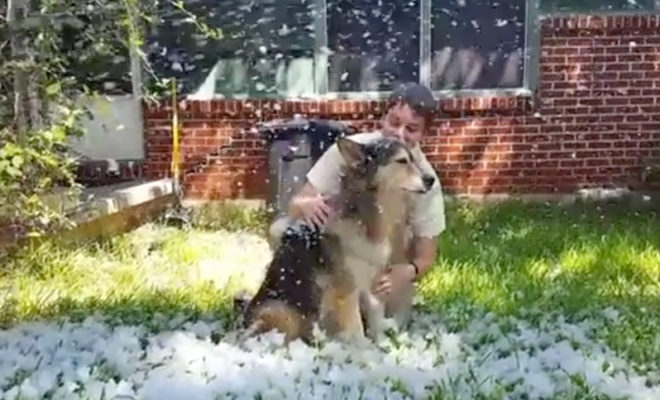 Spunky, a 12-year-old German shepherd-chow-husky mix, was diagnosed with a quick moving and painful cancer that left Ashley Niels with the hard decision to put her dog to sleep. To make Spunky’s last day special, Niels wanted to bring one of the dog’s favorite things to her front yard – snow.