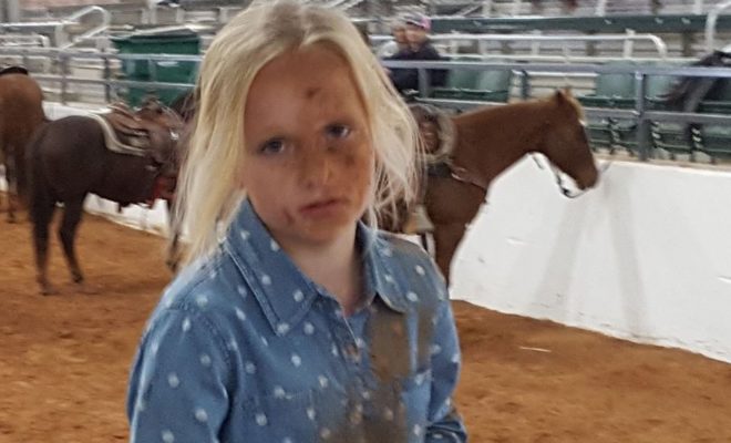 The family normally posts videos of their successes on their Facebook page to the likes and comments of a normal segment of family and friends, but more than 20K shares was something they hadn’t expected. “When it hit 10,000 I was like ‘no way,’ and then when it hit 20,000 it went like wildfire. They nearly all were taken aback by her determination and hustle to get up after the fall and to still tie her goat,” Kameryn’s mom told MySA.com. Celebrating her 9th birthday on Feb. 21 Kameryn scored some pretty great birthday presents at the annual San Antonio Stock Show & Rodeo. Placing 2nd in goat touching, 8th in pole-bending and winning the breakaway roping competition for her age group, her involvement in rodeo since the age of five has earned her some skills. And according to her mom, Kameryn “absolutely lives and breathes it.” Good on her!