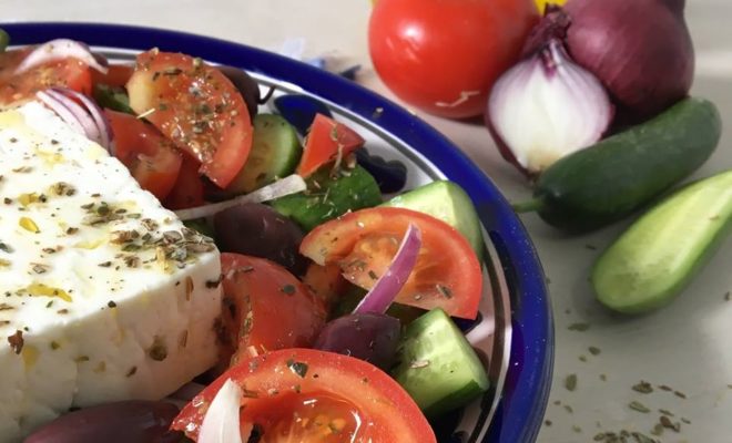 As with many of the most delicious yet simple dishes, Horiatiki requires the use of excellent ingredients. What better way to make such a salad than with ingredients that are locally sourced? In Texas, you’ll find a variety of olive ranches that produce high-quality Extra Virgin Olive Oil (EVOO), not to mention the many produce markets that will feature fresh tomatoes, fresh and fragrant oregano, kalamata olives and the real-deal Greek feta. Shared on JamieOliver.com, this recipe for Horiatiki also features green peppers, however, you can decide if that’s an addition you wish to make.
