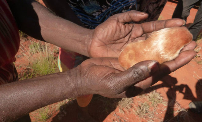 Their Facebook page’s administrator, Kate Crossing, told Buzzfeed, “We were driving along a bush track on our way home when this little golden creature ran across the road in front of us. Yalti yelled out ‘karrkaratul’ and jumped out as I stopped the car. We all crowded round as Yalti held this beautiful creature carefully in her hands, its powerful front feet trying to dig to safety.”