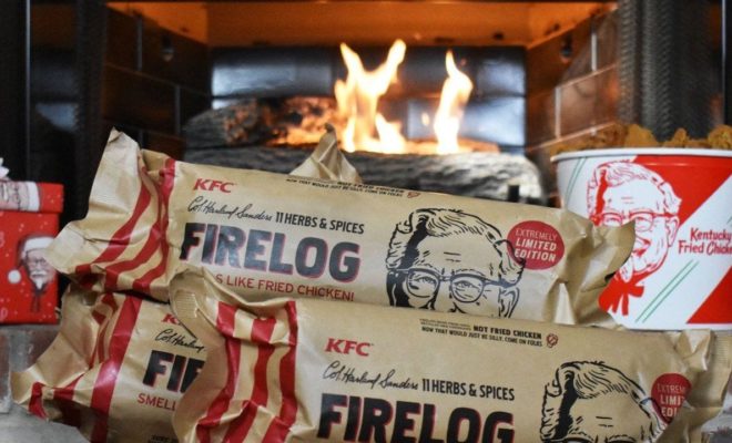 Instead of chestnuts roasting on an open fire, there’s a new scent on the block (not a block of wood, per se). KFC – that venerable mecca of fried chicken of the fast-food variety – has deemed it necessary to bestow upon us one more way in which to enjoy the scent of their secret recipe over the holidays. They developed a limited-edition KFC “11 Herbs & Spices Firelog” that smelled like their famed fried chicken. And it sold out lightning fast.