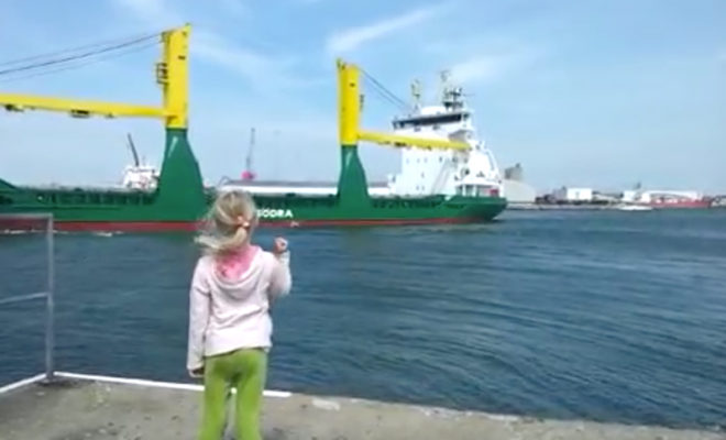 Little Girl Freaks Out After Asking Ship to Honk its Horn