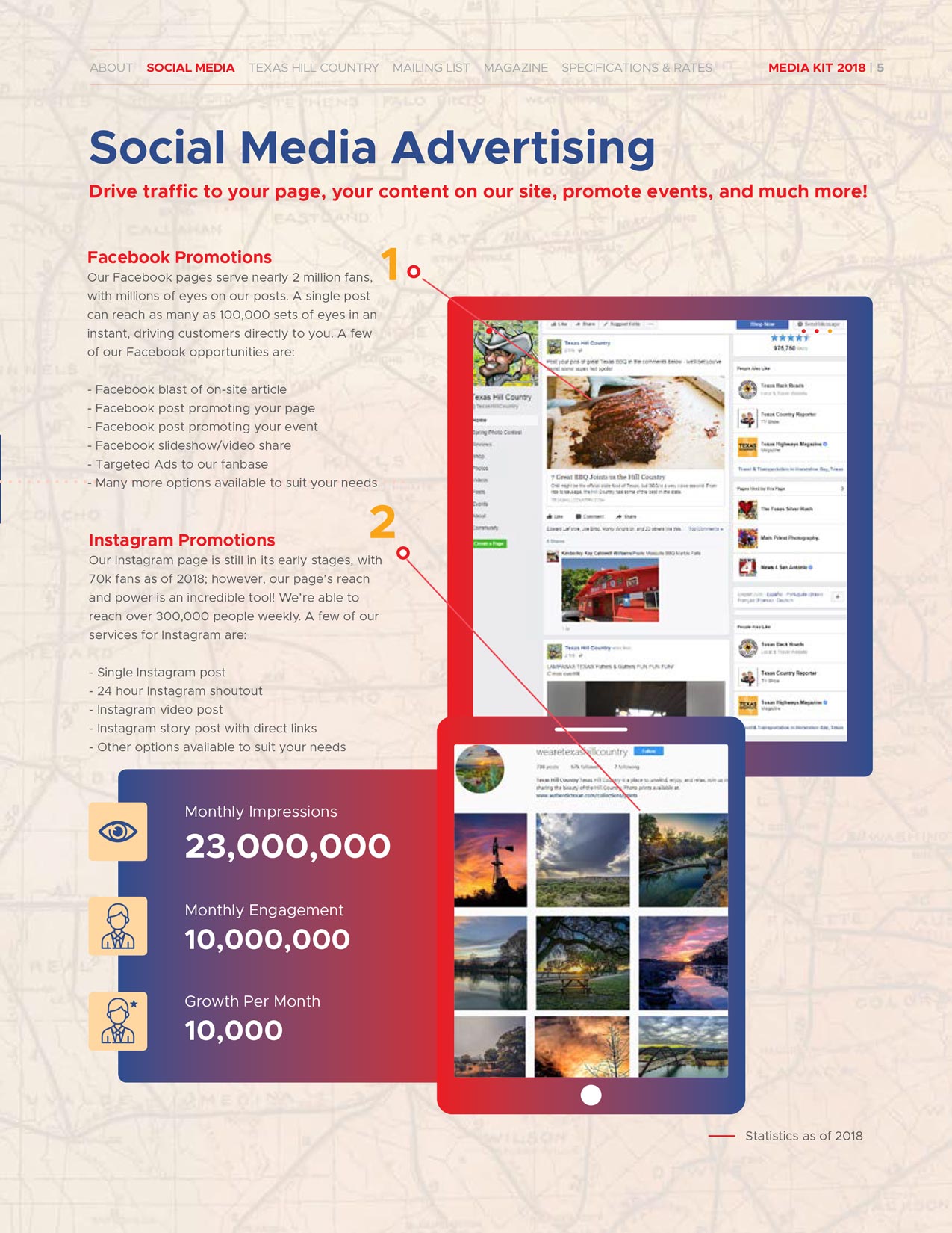 With an in-house designed, bespoke platform, we are able to push hundreds of thousands towards your brand, business, product, or city in just a few hours. Not paid-for fans and views, these are 100% organic, from people who are passionate and love the Hill Country just as much as you do.