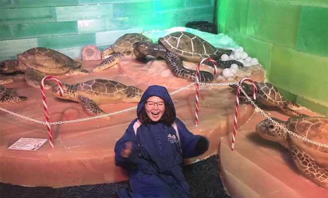 Video from last year’s Ice Land installation (taken by Dan Kebinos) shows that Ice Land was a family-friendly experience to remember where partons borrowed blue snow jackets to endure the cold temperatures that many Texans aren’t accustomed to. Use of lights and dyes shade the ice to create incredible representations of creatures, like sea turtles and dolphins, and architecture, like otherworldly castles. Also, there were ice slides that people could bravely take a trip down as long as they didn’t mind a cold bum. At the end, there’s even an ice bar!
