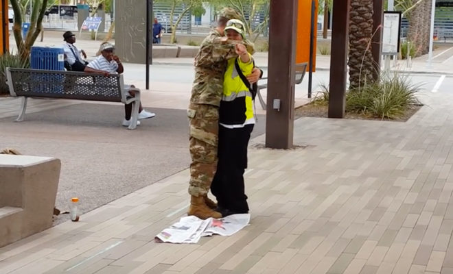 In a video called “Soldier Surprises Mother at Work” posted to YouTube on July 1 , a young man in uniform sits in a park casually reading a newspaper. The video takes a funny and heartwarming turn once the soldier’s mom walks by him.