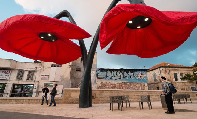Big Street Lamp Installations ‘Bloom’ in a Jerusalem Square