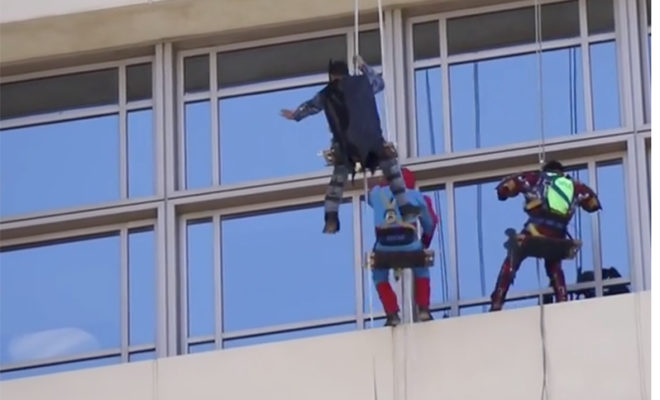 Superheros Surprised Kids at MD Anderson By Repelling Off the Roof