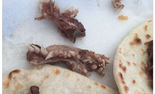 On Sunday, MySA.com reports that Courtney Aguilar lost her appetite at El Rincon Mexican Restaurant in Pflugerville after she found what she thought were teeth in her barbacoa tacos. She posted a photo on Facebook that quickly spread through the internet with people joining in with her disgust.