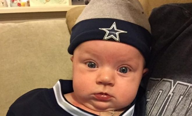 Suffering from a life-threatening congenital heart defect, Lola has spent the last two months at Cook Children’s Medical Center in Fort Worth as opposed to her home, while doctors make every effort to help her at this crucial time. This tiny little fan shares the love of football with her dad, who is a lifetime Cowboys devotee, and on Saturday, January 7, when her dad had to be away and nothing else would do the trick, Laura turned a Cowboys game on for Lola, and instantaneously she stopped crying to stare at the game.