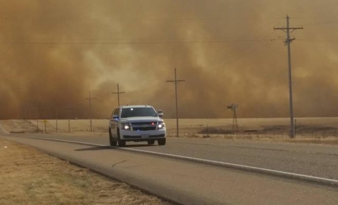 In a video shared by KAMR Local 4 News on their Facebook page, wildfires happening between Fritch and Amarillo in the Texas Panhandle yesterday (March 6) saw blinding smoke rising high up into the sky and spread out for miles ahead of the flames as emergency crews awaited further direction from their patrol positions ahead of the blaze.
