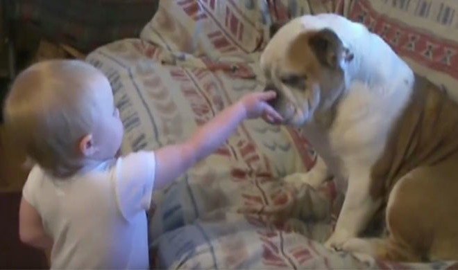 This Baby Has a Tiff with Her Bulldog and It’s Super Cute