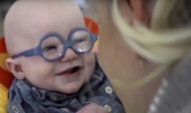 When his momma puts custom glasses on baby Leopold, he can finally see her for the first time, and his reaction will make you smile.